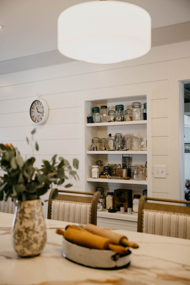 A space designed with thoughtful storage solutions, comfortable gathering areas and curated displays of antiques and family heirlooms.