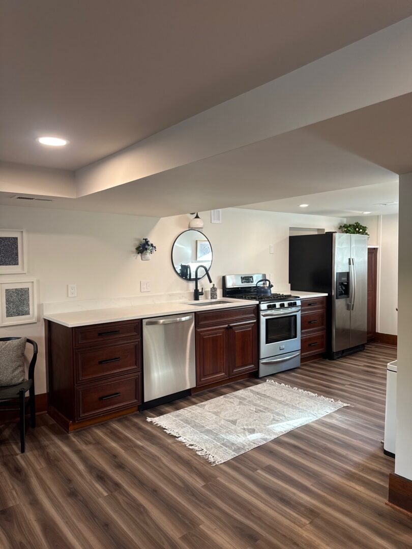 Transform an old sub- basement, church kitchen into a bright and comfortable 2 bedroom rental until