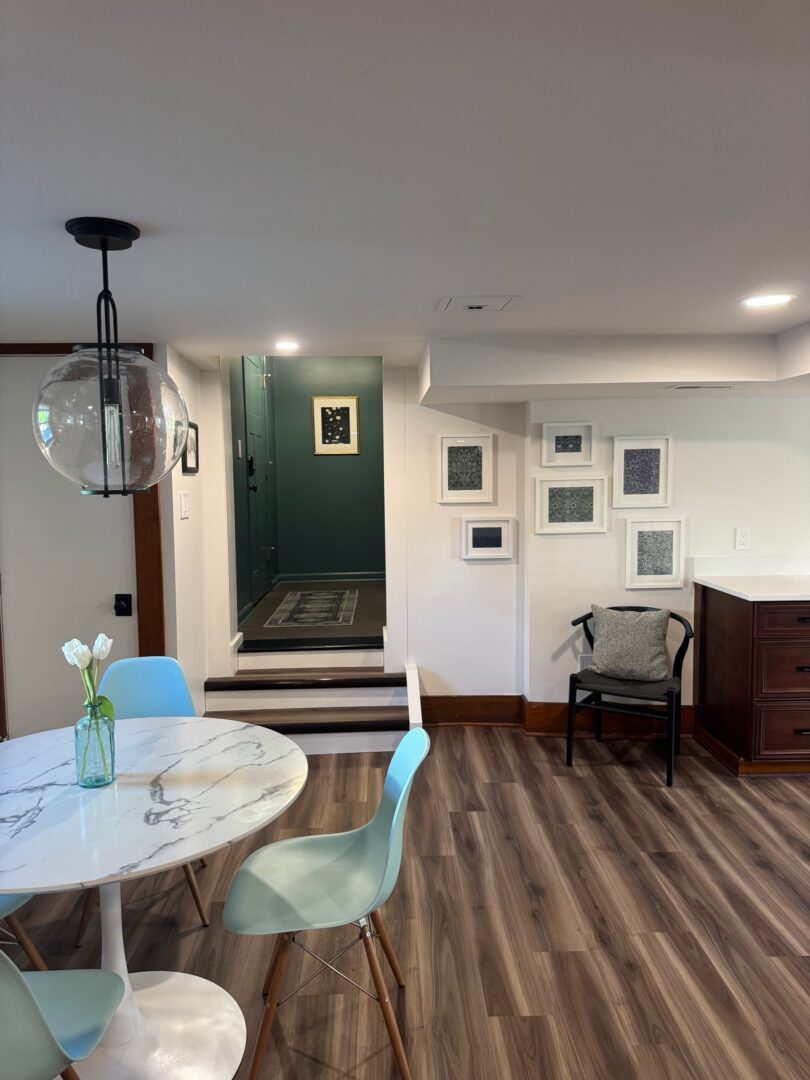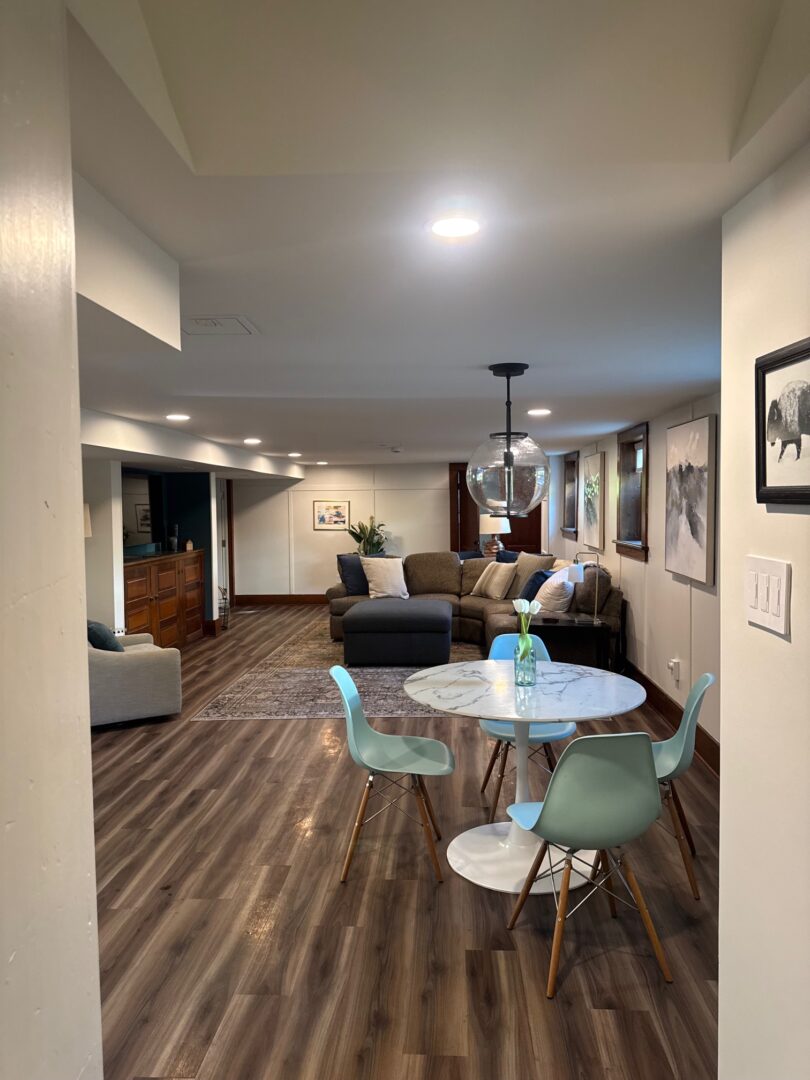 An open and airy living area that feels worlds away from it’s sub-basement roots.