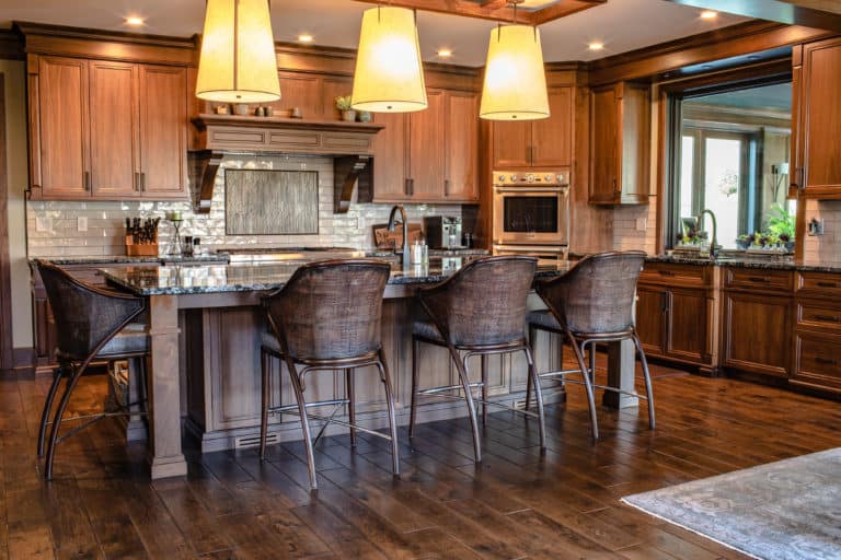 Create a large kitchen and family room space with a lot of storage and seating for large parties and family dinners but still feel cozy enough for the daily coffee for two.